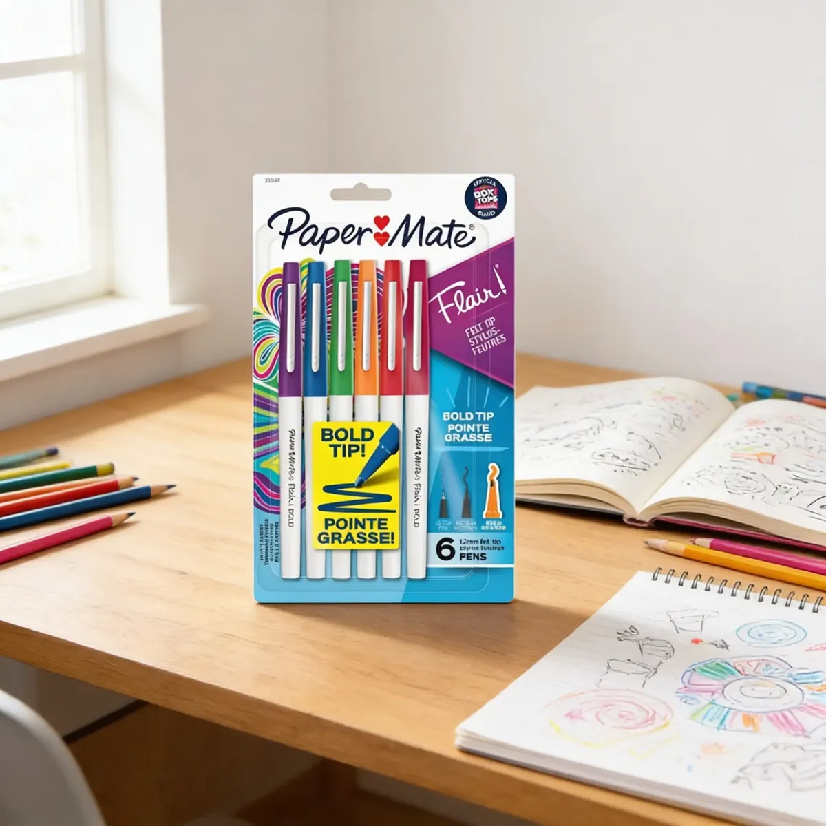 - Inclui 06 canetas Paper Mate Flair em cores sortidas